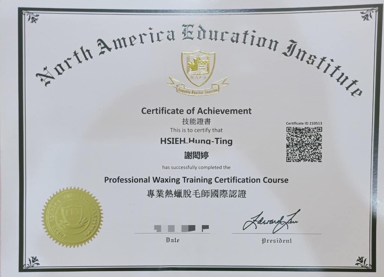 ▪️NAEI加拿大國際熱蠟淨毛認證